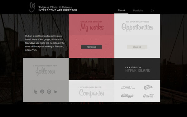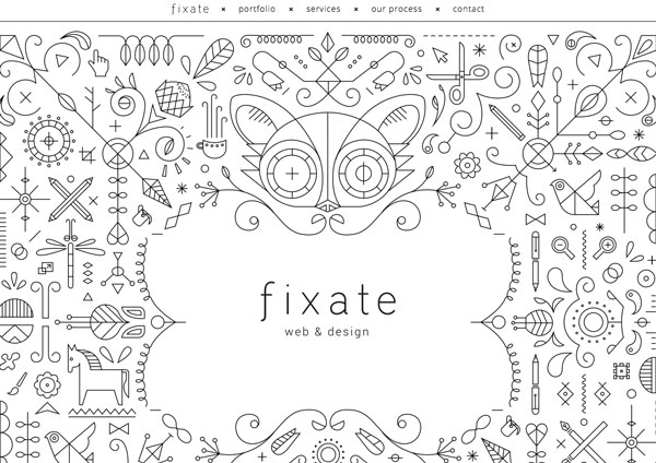 整個首頁采用黑色線條矢量圖組成一個密集式的豐富多彩的圖片,突出設計原創(chuàng)性。而字體也與此相稱,整個網站設計感很強,還適當裝飾了動畫效果,不失為上乘之作。