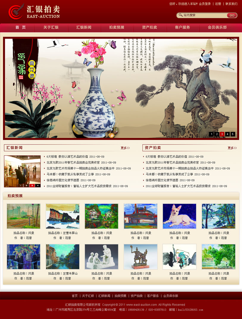 項目名稱:深圳匯銀拍賣有限公司網站建設簽定日期:2011年8月4日網站首頁設計稿(縮略圖):...