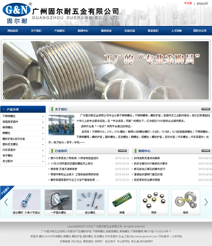 項目名稱:廣州固而耐五金有限公司網站建設 簽定日期:2012年2月11日 網址:http://www.guernai.com