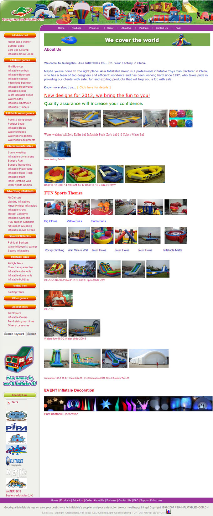 項目名稱:GuangzhouAsiaInflatablesCo.,Ltd網站建設簽定日期:2012年3月15日網址:http://www.asia-inflatables.com.cn...