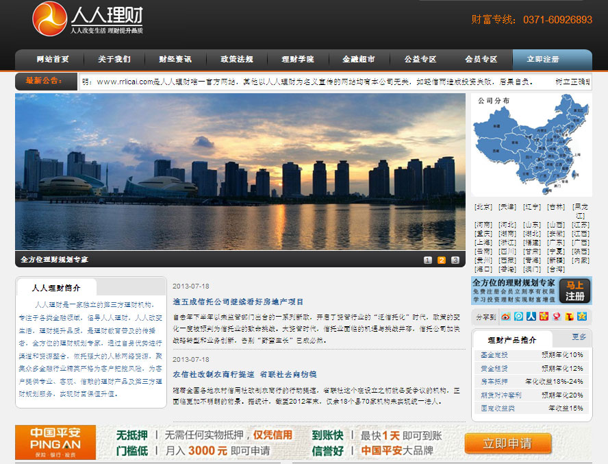 項目名稱:人人理財網站建設 簽定日期:2013年1月15日 網址:http://www.rrlicai.com/