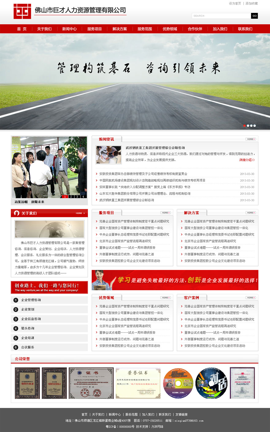 項目名稱:佛山市巨才人力資源網站建設 簽定日期:2013年3月21日 網址:http://www.jchrgl.com