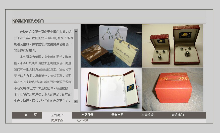 ??? 健鴻制品有限公司位于中國廣東省,成立于2005年。我們主要從事印刷,包裝產品的制造及出口,并根據客戶需要提供包裝設計和物流運輸服務。