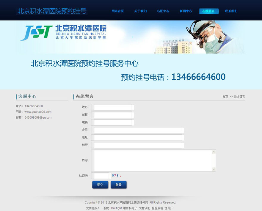 項目名稱:北京積水潭醫院網上預約掛號網網站建設 簽定日期:2013年7月19日 網址:http://www.guahao99.com