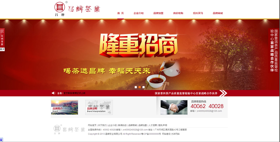 昌牌茶業產品系列豐富多樣,深受消費者青睞及好評,先后多次榮獲國內、國際博覽會茶王獎、金獎,并榮獲中國著名品牌、中國十大優質普洱茶品牌、中國茶行業十大影響力品牌等,成為眾多消費者品飲及收藏送禮之首選;是國家普洱茶產品質量監督檢驗中心首家戰略合作伙伴。
