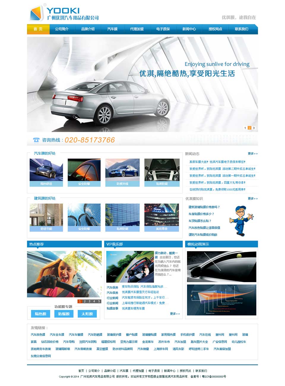 廣州市優(yōu)淇汽車用品有限公司原材料由美國專業(yè)防爆膜公司生產(chǎn)制造,榮獲美國能源部門頒獎(jiǎng)表揚(yáng),所有色系的產(chǎn)品都依據(jù)消費(fèi)者需要嚴(yán)格挑選,其功能與品質(zhì)更是受到世界各汽車公司所指定,迄今為止優(yōu)淇專業(yè)汽車隔熱膜獨(dú)特的光譜先把技術(shù)仍然是被歐洲名車制造商(如奔馳、寶馬等)指定選用的原裝車窗隔熱技術(shù)。2014年為止,已有超過1000萬輛名車見證了優(yōu)淇專業(yè)汽車隔熱膜技術(shù)的卓越表現(xiàn)。發(fā)展至今,優(yōu)淇汽車隔熱膜品牌已在全國各省、直轄市設(shè)立了29家直營經(jīng)銷服務(wù)網(wǎng)絡(luò),幾乎每個(gè)直轄市、省會城市都有優(yōu)淇的直營服務(wù)公司,管理全國400多家授權(quán)專營店。同時(shí),優(yōu)淇汽車隔熱膜也成為眾多知名汽車4S店的指定貼膜品牌。優(yōu)淇汽車隔熱膜,具有高隔熱性、高透視率、低內(nèi)反光率、幾近百分百阻隔紫外線、良好的私密性、完美的防護(hù)性、安全環(huán)保等特點(diǎn),創(chuàng)新科技,引領(lǐng)時(shí)尚。力求以卓越的品質(zhì)、專業(yè)的技術(shù),高效的服務(wù)打造中國隔熱膜第一品牌。