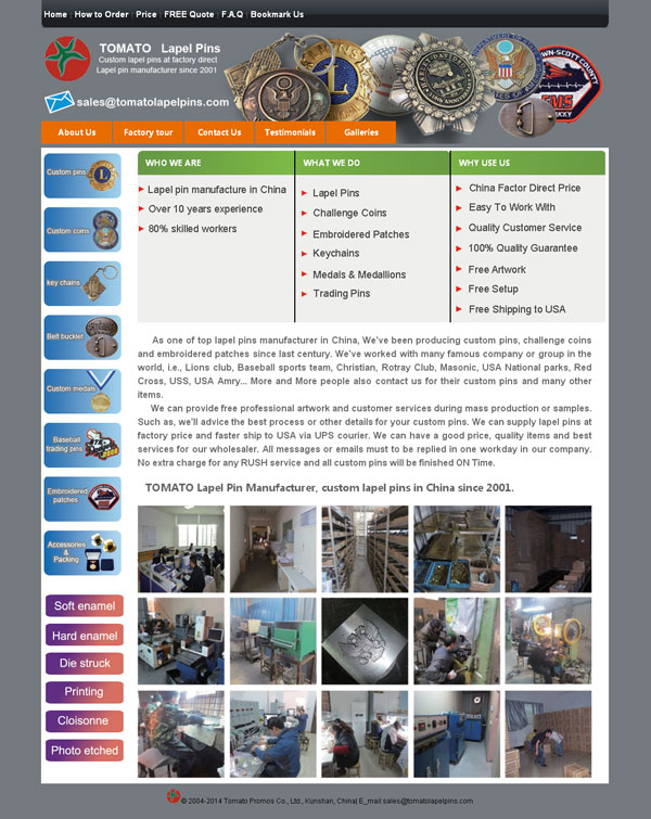As one of top lapel pins manufacturer in China, We've been producing custom pins, challenge coins and embroidered patches since last century. We've worked with many famous company or group in the world, i.e., Lions club, Baseball sports team, Christian, Rotray Club, Masonic, USA National parks, Red Cross, USS, USA Amry... More and More people also contact us for their custom pins and many other items.