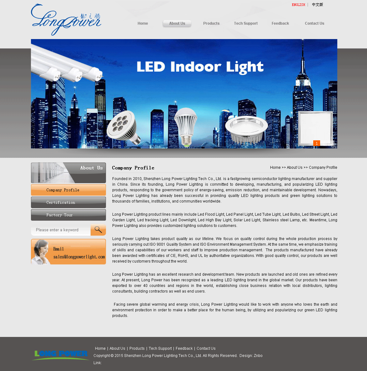 Long Power Lighting product lines mainly include Led Flood Light, Led Panel Light, Led Tube Light, Led Bulbs, Led Street Light, Led Garden Light, Led tracking Light, Led Downlight, Led High Bay Light, Solar Led Light, Stainless steel Lamp, etc. Meantime, Long Power Lighting also provides customized lighting solutions to customers.