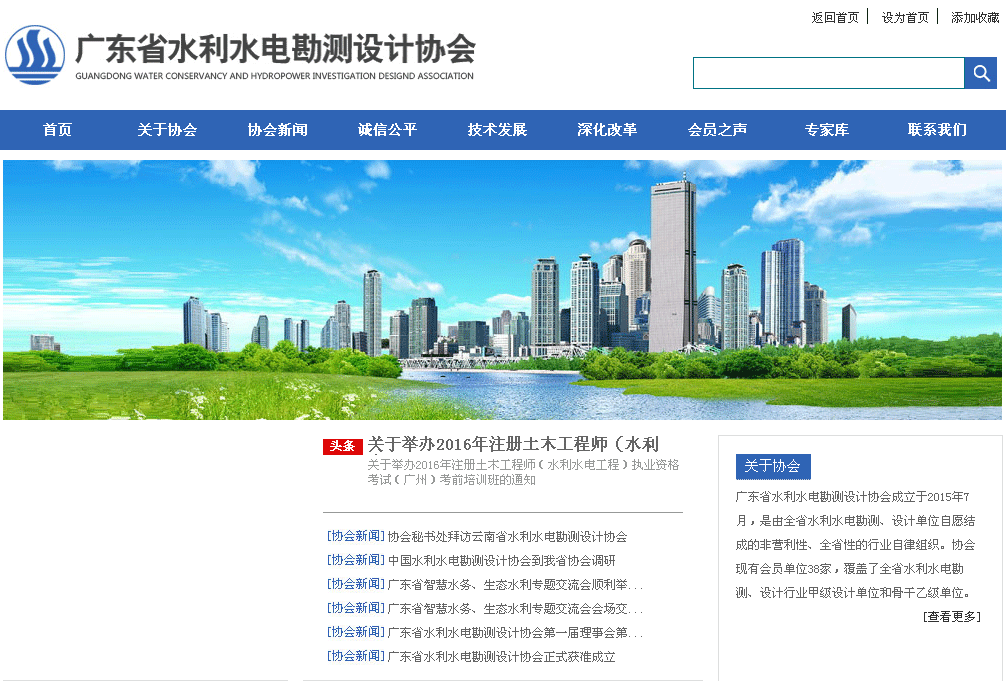 廣東省水利水電勘測設計協會是由全省水利水電勘測、設計單位自愿結成的非營利性、全國性的行業自律組織。協會現有會員單位38家,覆蓋了全省水利水電勘測、設計行業甲級設計單位和骨干乙級單位。 網站設計預覽: