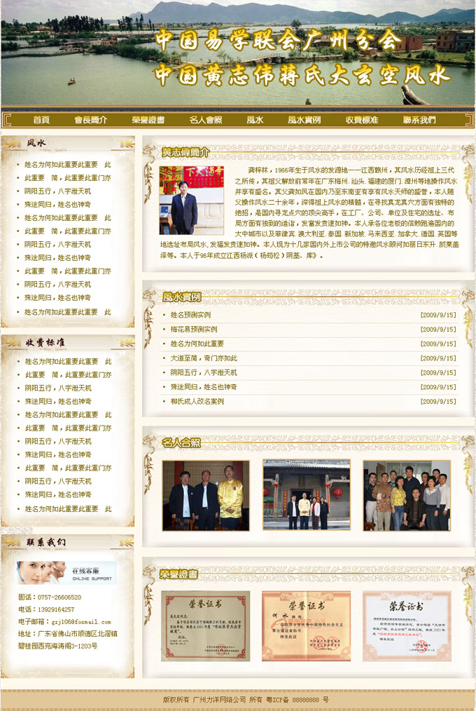 項目名稱:黃志偉風水大師網站建設協議(易學聯會廣州分會)簽定日期:2009年10月13日首頁效果:...