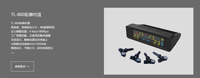 ? ? ? ?胎狼,是一家專業研發、生產、銷售汽車輪胎壓力監測系統(TPMS)的高新技術企業,位于美麗的東莞松山湖中小科技企業創業園,公司秉承客戶至上,產品優良的管理理念。公司已通過ISO9001:2000質量管理體系審核,并嚴格按照體系要求從研發、生產、運營各個環節進行質量管理控制;并且取得了多項胎壓監測產品的專利技術,產品通過了美國FCC、歐盟CE、RoHs及第三方質檢中心等國內外權威機構的檢驗。