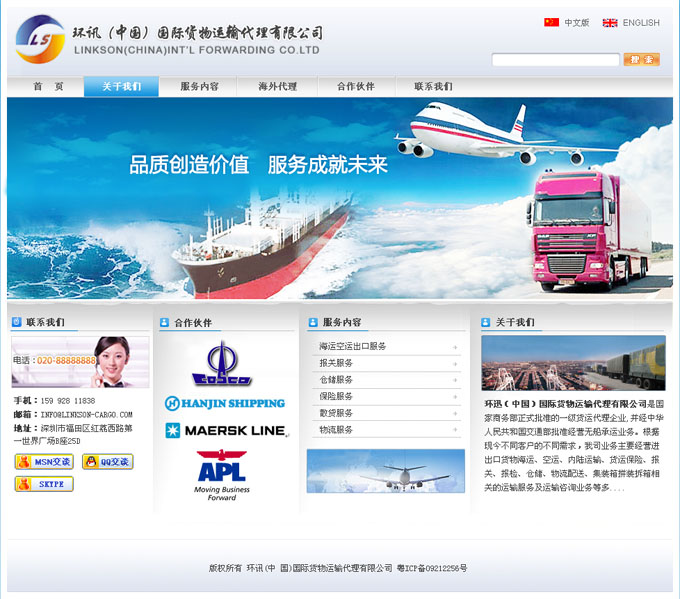 環(huán)迅(中國(guó))國(guó)際貨物運(yùn)輸代理有限公司是國(guó)家商務(wù)部正式批準(zhǔn)的一級(jí)貨運(yùn)代理企業(yè),并經(jīng)中華人民共和國(guó)交通部批準(zhǔn)經(jīng)營(yíng)無(wú)船承運(yùn)業(yè)務(wù)。根據(jù)現(xiàn)今不同客戶的不同需求,該公司業(yè)務(wù)主要經(jīng)營(yíng)進(jìn)出口貨物海運(yùn)、空運(yùn)、內(nèi)陸運(yùn)輸、貨運(yùn)保險(xiǎn)、報(bào)關(guān)、報(bào)檢、倉(cāng)儲(chǔ)、物流配送、集裝箱拼裝拆箱相關(guān)的運(yùn)輸服務(wù)及運(yùn)輸咨詢業(yè)務(wù)等多項(xiàng)服務(wù)領(lǐng)域,服務(wù)航線遍及世界各地。環(huán)迅(中國(guó))與各報(bào)關(guān)行及各大船公司保持良好合作關(guān)系,能為他們提供方便快捷的貨代服務(wù)。