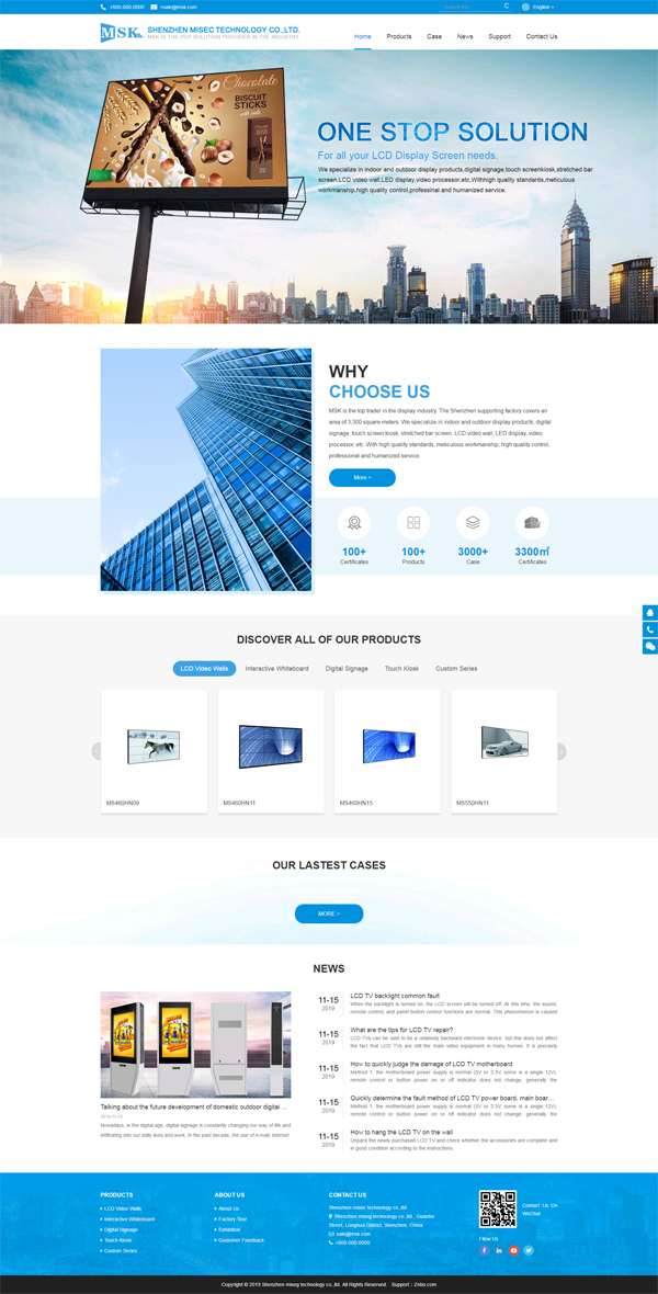 MSK is the top trader in the display industry. The Shenzhen supporting factory covers an area of 3,300 square meters. We specialize in indoor and outdoor display products, digital signage, touch screen kiosk, stretched bar screen, LCD video wall, LED display, video processor, etc. With high quality standards, meticulous workmanship, high quality control, professional and humanized service.