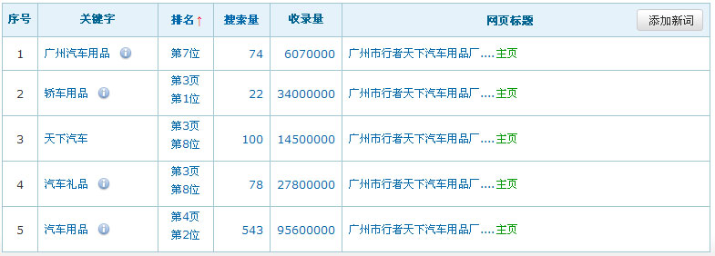 網站名稱:廣州市行者天下汽車用品網址:http://www.xztx668.com關鍵詞:汽車用品、汽車禮品、廣州汽車用品服務類型:收費(1500元/年)關鍵詞在百度排名數據:...