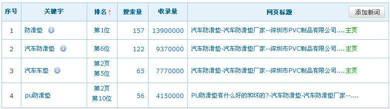關鍵詞在百度排名數據:(暫時只列出百度的排名數據,其它搜索引擎的排名效果暫不列出)
