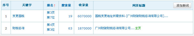 關(guān)鍵詞在百度排名數(shù)據(jù):(暫時(shí)只列出百度的排名數(shù)據(jù),其它搜索引擎的排名效果暫不列出)