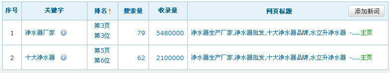 關鍵詞在百度排名數據:(暫時只列出百度的排名數據,其它搜索引擎的排名效果暫不列出)