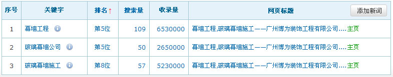 關鍵詞在百度排名數據:(暫時只列出百度的排名數據,其它搜索引擎的排名效果暫不列出)
