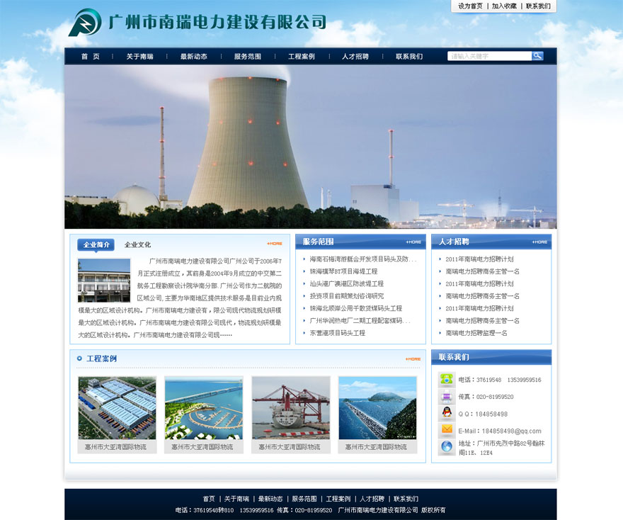 項目名稱:廣州南瑞電力建設有限公司網站建設簽定日期:2011年7月13日網站首頁設計稿:(縮略圖)...