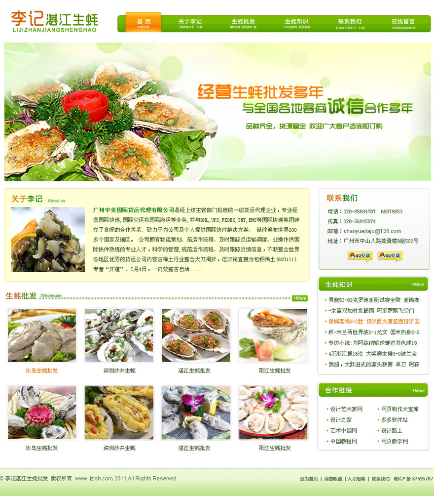 項目名稱:李記湛江生蠔批發網網站建設簽定日期:2011年8月15日公司網址:http://www.ljzjsh.com網站首頁效果縮略圖:...