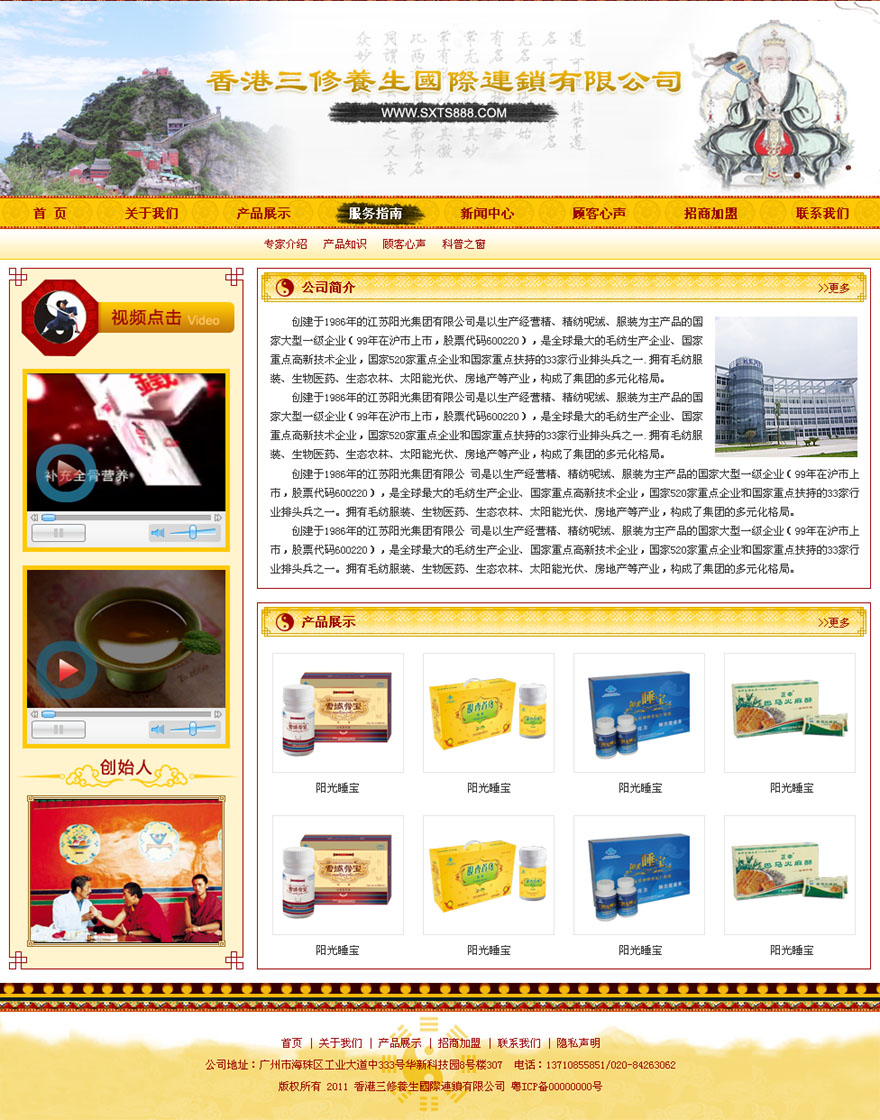 項目名稱:香港三修養生國際連鎖有限公司網站建設簽定日期:2011年9月27日網站首頁效果圖:...