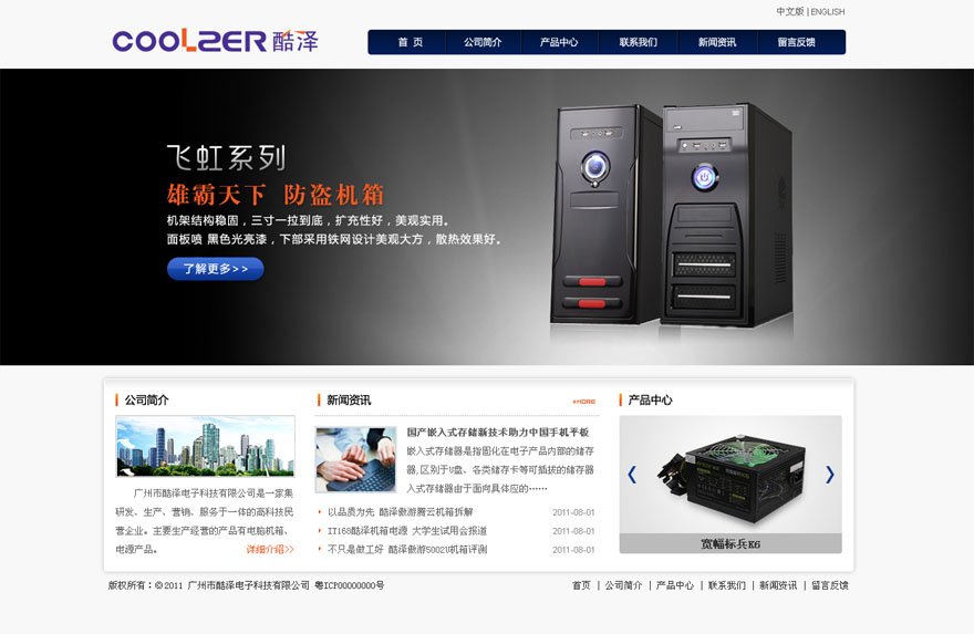 項目名稱:廣州市酷澤電子科技有限公司網站建設簽定日期:2011年11月11日注冊網址:http://www.coolzer.net公司簡介:???廣州市酷澤電子科技有限公司是一家集研發、生產、營銷、服務于一體的高科技民營企業。主要生產經營的產品有電腦機箱、電源...