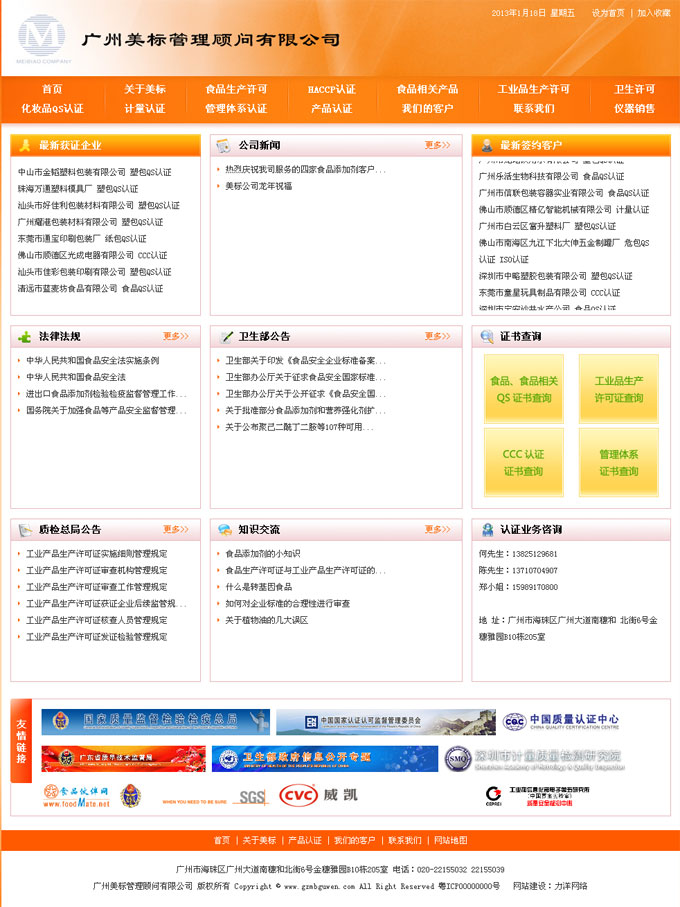 項目名稱:廣州美標管理顧問有限公司網站建設 簽定日期:2012年2月22日 網址:http://www.gzmbguwen.com
