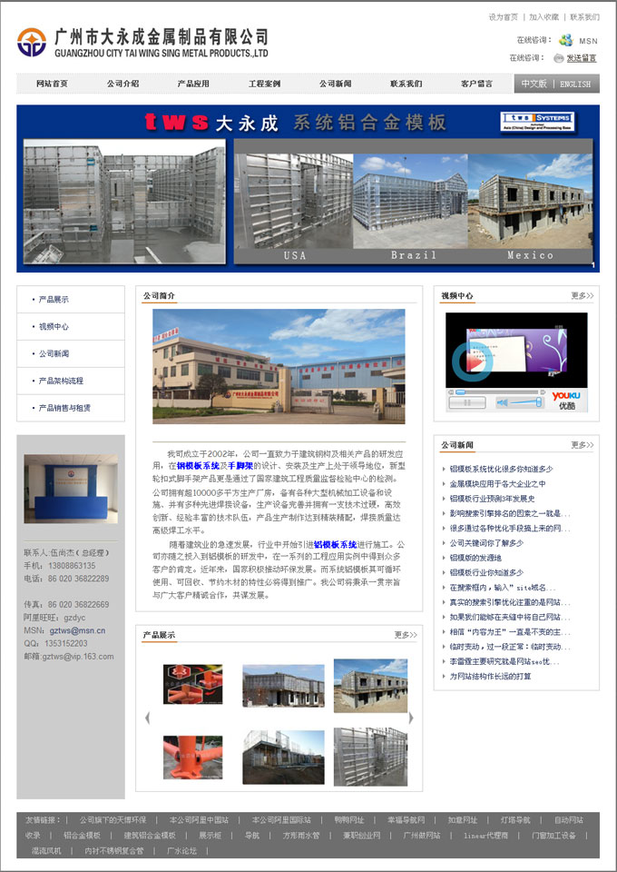 大永成金屬制品有限公司成立于2002年,公司一直致力于建筑鋼構及相關產品的研發應用,在鋼模板系統及手腳架的設計、安裝及生產上處于領導地位,新型輪扣式腳手架產品更是通過了國家建筑工程質量監督檢驗中心的檢測。公司擁有超10000多平方生產廠房,備有各種大型機械加工設備和設施、并有多種先進焊接設備,生產設備完善并擁有一支技術過硬,高效創新、經驗豐富的技術隊伍,產品生產制作達到精裝精配,焊接質量達高級焊工水平。
