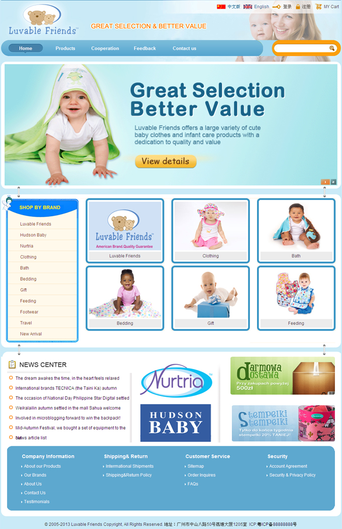 項目名稱:廣州速來母嬰用品有限公司網站建設簽定日期:2012年6月20日網址:http://www.luvablefriends.org...