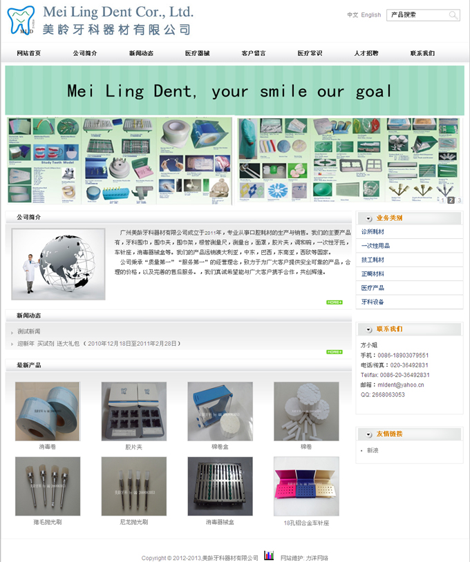 項目名稱:美齡牙科器材有限公司網站建設 簽定日期:2012年8月4日 網址:http://www.mldentchina.com