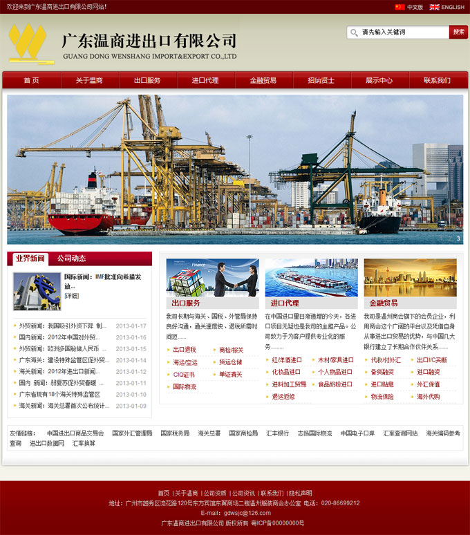???????? 廣東溫商進出口有限公司是一家專業的進出口公司,由廣東溫州服裝商會精英所組建的,公司具有豐富的商會會員資源,聚集一批高層次高素質的管理人才,并與溫州商會會員企業,有著多年專業歐洲空運海運包清關服務的知名中歐物流集團志揚國際物流集團強強聯手。公司位于廣州市越秀區東方賓館,環境優雅,交通便利,信息資源豐富。