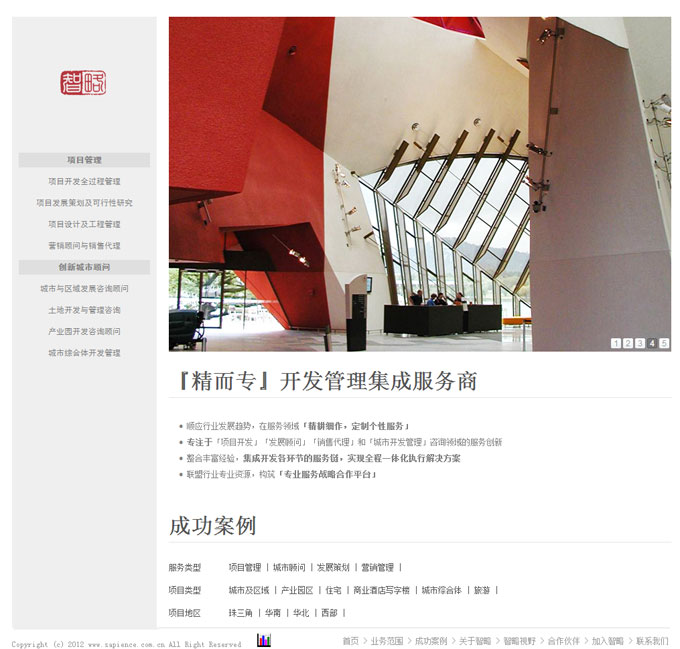 項目名稱:廣州智略房地產咨詢有限公司網站建設簽定日期:2012年9月15日網址:http://www.sapience.com.cn...