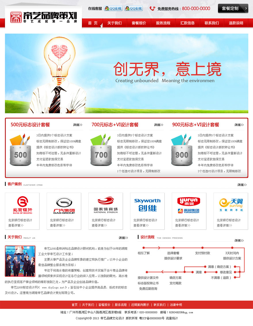 帝藝LOGO標(biāo)志設(shè)計(jì)網(wǎng)( www.diylogo.net),旨在給中小企業(yè)提供高品質(zhì)、低成本的標(biāo)志及VI設(shè)計(jì)。運(yùn)營(yíng)商為湖南帝藝品牌設(shè)計(jì)策劃有限公司。帝藝LOGO以網(wǎng)絡(luò)和電話為溝通載體,突破面對(duì)面溝通的瓶頸。可以充分了解到客戶標(biāo)志設(shè)計(jì)想法,解決了各地客戶找不到本地合適標(biāo)志設(shè)計(jì)公司的 惱。帝藝LOGO標(biāo)志設(shè)計(jì)網(wǎng)( www.diylogo.net),旨在給中小企業(yè)提供高品質(zhì)、低成本的標(biāo)志/VI設(shè)計(jì)。中國(guó)領(lǐng)先的一站式設(shè)計(jì)服務(wù)電子商務(wù)網(wǎng)站。