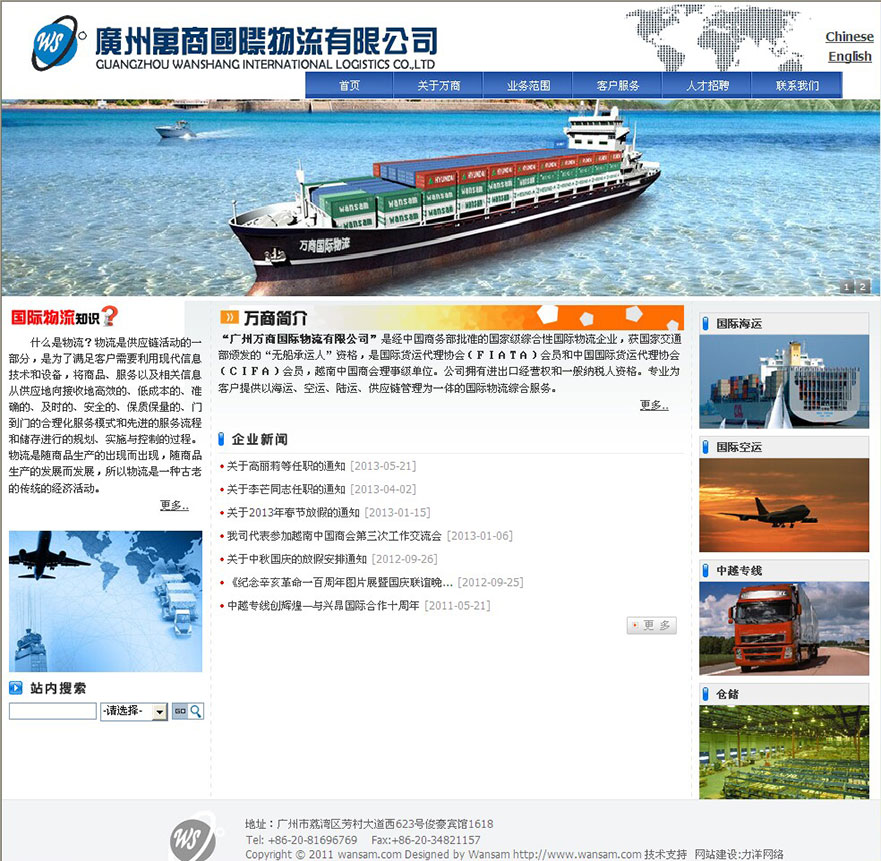 項目名稱:廣州萬商國際物流有限公司網站建設