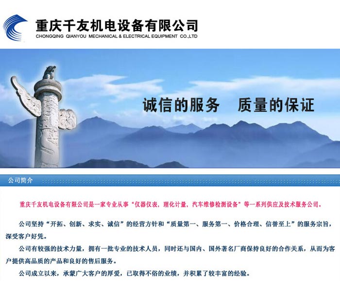 項目名稱:重慶千友機電設備有限公司 簽定時間:2014-2-25 項目網址:http://www.cqqyjd.com 項目簡介: ...