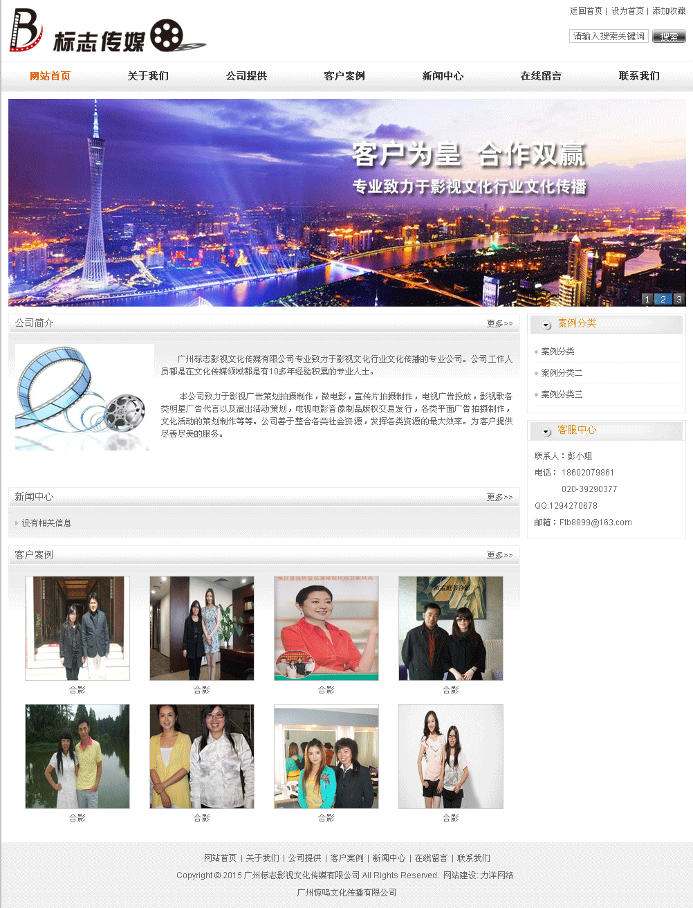項目名稱:廣州標志影視文化傳媒有限公司 簽定時間:2015-8-21 項目網址:http://www.cnbzcm.net 網站簡介: