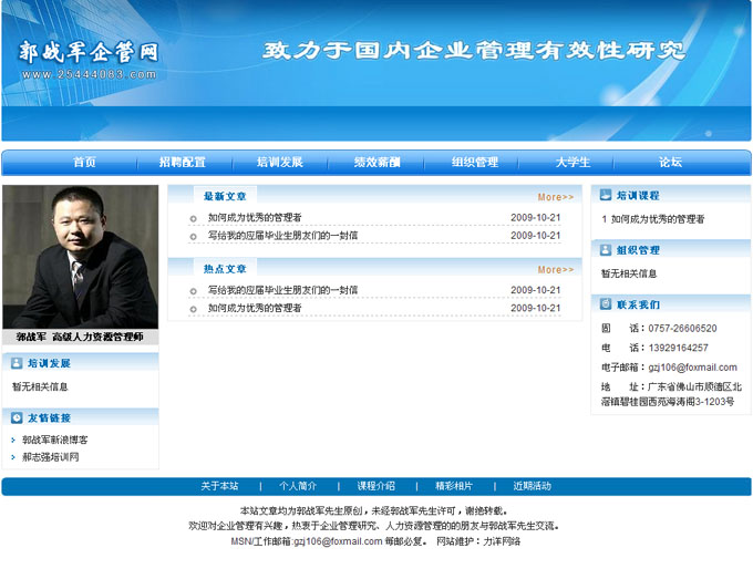 項目名稱:郭戰軍企管網網站建設簽定日期:2009年10月9日網站網址:www.25444083.com首頁效果圖:...