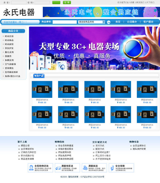 公司簡介: 廣州永氏電氣公司經營:電工室內材料,排水管、給水管、通風設備等等。經營批發多年,經營范圍,遍布珠三角,在行業中基本熟識本公司。本公司一貫以來,以誠信取信于朋友,取信于客戶。 永氏精神:誠實經營、不斷求新。 永氏公司經營理念:溥利多銷,顧客滿意就是我們追求的目標。 永氏經營方向,一切以市場為導向,不斷創新,不斷滿足客戶不同需要。