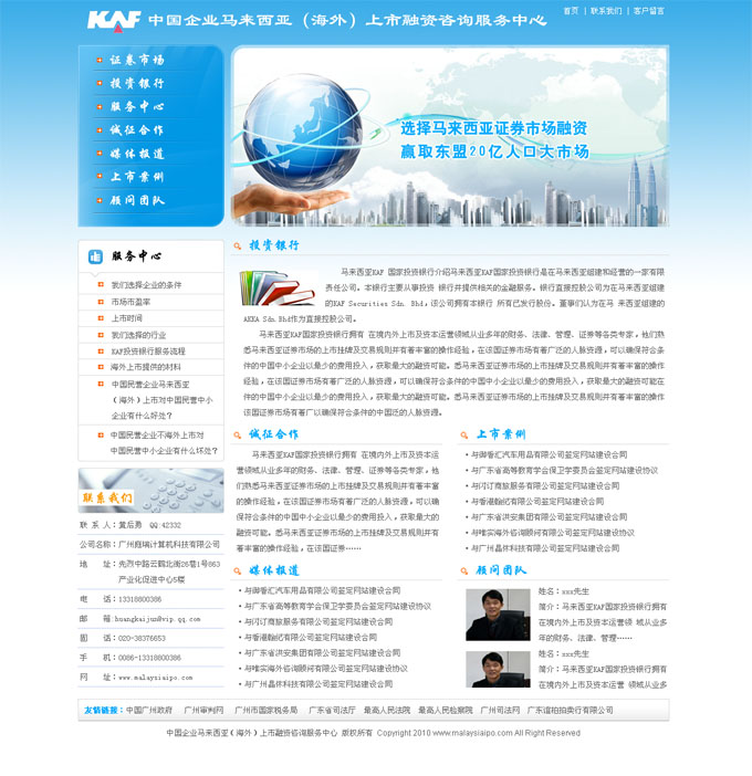 項目名稱:中國企業馬來西亞(海外)上市融資咨詢服務中心網站建設簽定日期:2010年5月5日網站首頁設計效果:...