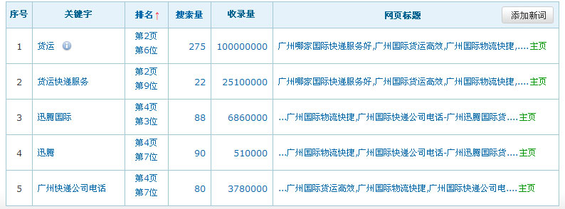 公司名稱:迅騰國際貨運代理網址:www.gs-oa.com關鍵詞:廣州哪家國際快遞服務好(百度第一頁),貨運(百度第二頁)關鍵詞在百度排名數據:...