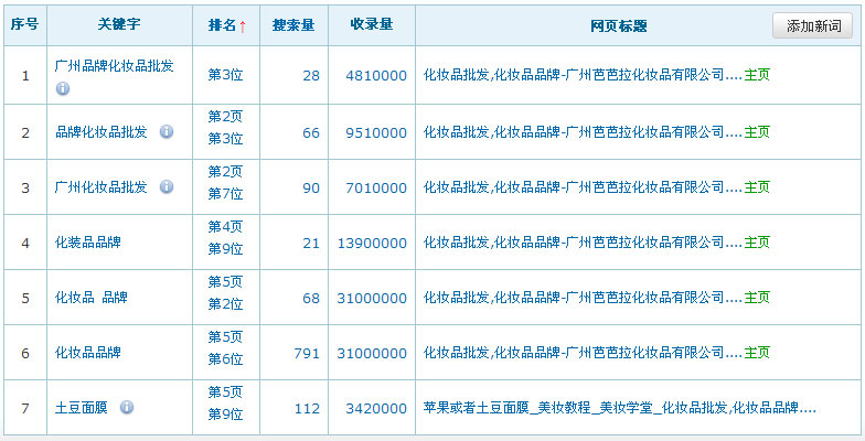 網站名稱:廣州芭芭拉化妝品有限公司網址:http://www.gzbba.com/關鍵詞:化妝品批發,化妝品品牌服務類型:收費(2500元/年)關鍵詞在百度排名數據:...