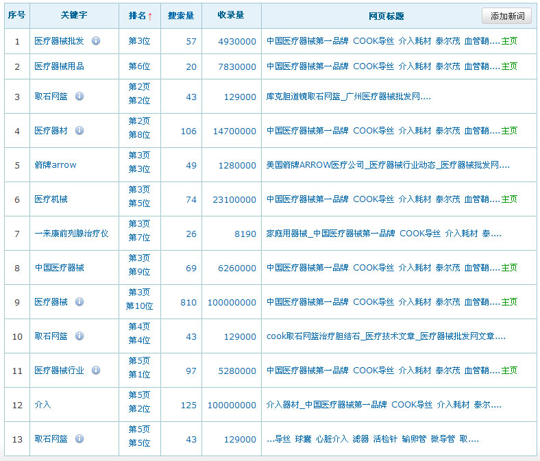 關(guān)鍵詞在百度排名數(shù)據(jù):(暫時只列出百度的排名數(shù)據(jù),其它搜索引擎的排名效果暫不列出)