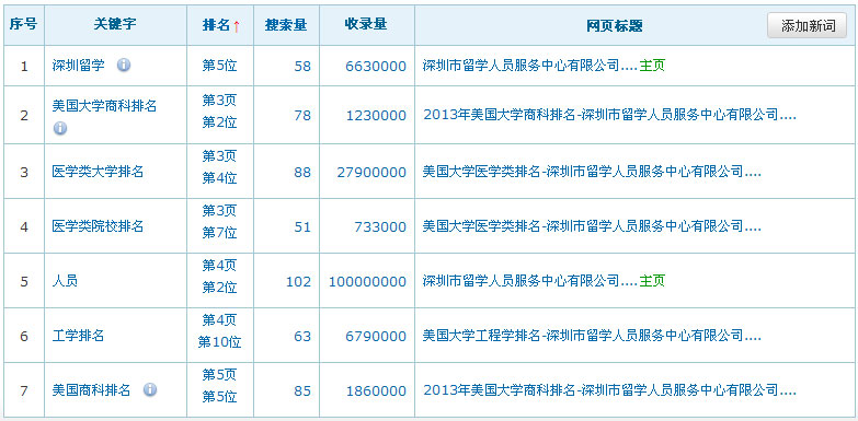 關鍵詞在百度排名數據:(暫時只列出百度的排名數據,其它搜索引擎的排名效果暫不列出)